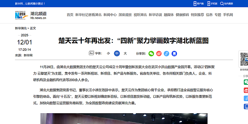 2025年,为深入贯彻落实习近平总书记考察湖北重要讲话精神,加快推进数字湖北建设,做强做优做大全省数字经济,湖北大数据集团正式成立,整合了省楚天云等数字产业平台公司,投资建设全省数字基础设施,汇集全省公共数据资源和重要行业数据,形成全省数据资源网络。