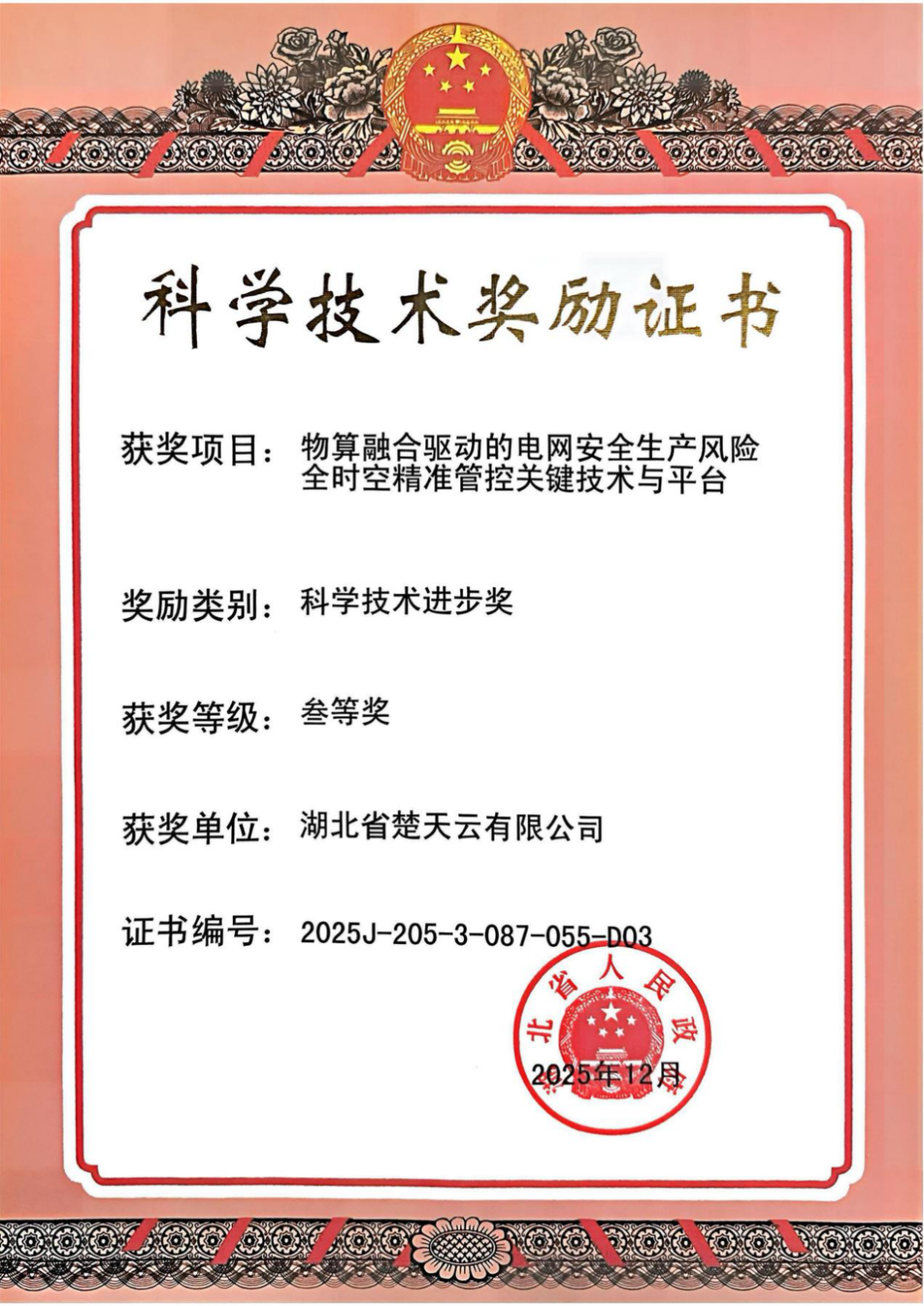 近日,2026年湖北省科技创新大会在武汉举行,会上宣读了《湖北省人民政府关于2025年度湖北省科学技术奖励的决定》。湖北大数据集团旗下湖北省楚天云有限公司(以下简称“楚天云公司”)深度参与的“物算融合驱动的电网安全生产风险全时空精准管控关键技术与平台”项目,凭借突出的技术创新价值与扎实的工程应用成效,荣获湖北省科学技术进步三等奖。截至目前,楚天云公司已获得两项湖北省科学技术进步一等奖,三项湖北省科学技术进步三等奖。