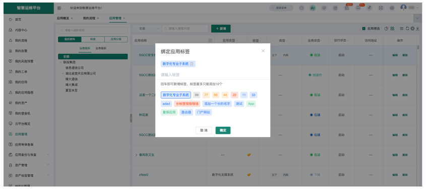 支持对应用进行增删改查,置顶设置,支持用户灵活自定义标签及标签颜色。