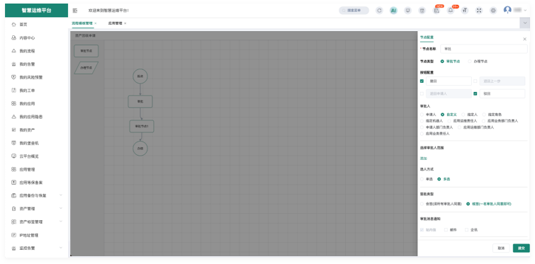 提供各类型流程节点的展示、新增、删除、修改及发布等功能。