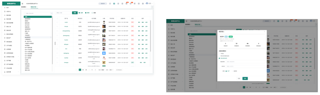 支持增删改查平台管理员,根据角色筛选对应的管理员,展示其详细信息,包括:用户名、真实姓名、电子邮箱、头像、手机号码、创建时间和状态等。支持禁用或启用该管理员。移除管理员的同时支持将其权限移交给他人。